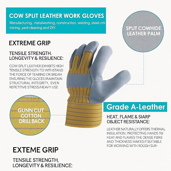 Built for tough, demanding work, Kavish Leather Gloves deliver exceptional abrasion and puncture resistance to keep your hands safe in any environment. Made from premium split-grain leather, these gloves provide a perfect balance of strength, flexibility, and comfort for construction, welding, industrial, and outdoor applications.