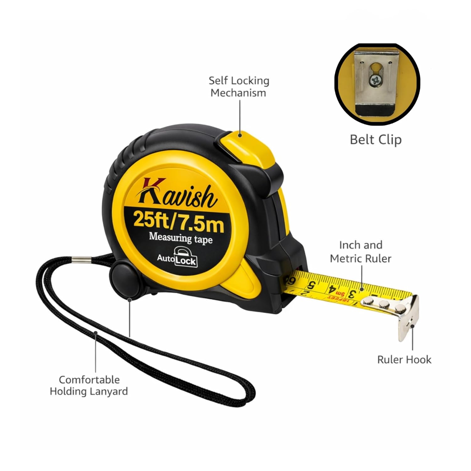 Kavish Measuring Tape 25ft/7.5m Auto-Lock
